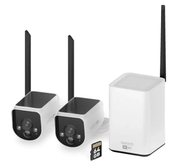 Swann’s MaxRanger4K Solar Security System uses the latest Wi-Fi HaLow™ technology to generate a longer wireless range and a stronger signal able to transmit through obstacles such as doors, walls, trees and more. This allows you to see and record activity up to 800ft/250m in open air and up to 330ft/100m in typical use. With 10x the coverage of other Wi-Fi security systems it’s perfect for homes of all shapes and sizes, small business, rural properties, farms and more. The system's 2 cameras are 'forever powered' by integrated solar charging panels, and the Hub has a battery backup that lasts up to 5 hours during power outages. Setting up the system is quick and easy using the app with pre-paired hardware and simple mounting. The True Detect+™ feature senses heat, motion, people, and vehicles, triggering recording and alerts. To prevent crime, the system includes sensor spotlights, sirens, and mobile alerts.